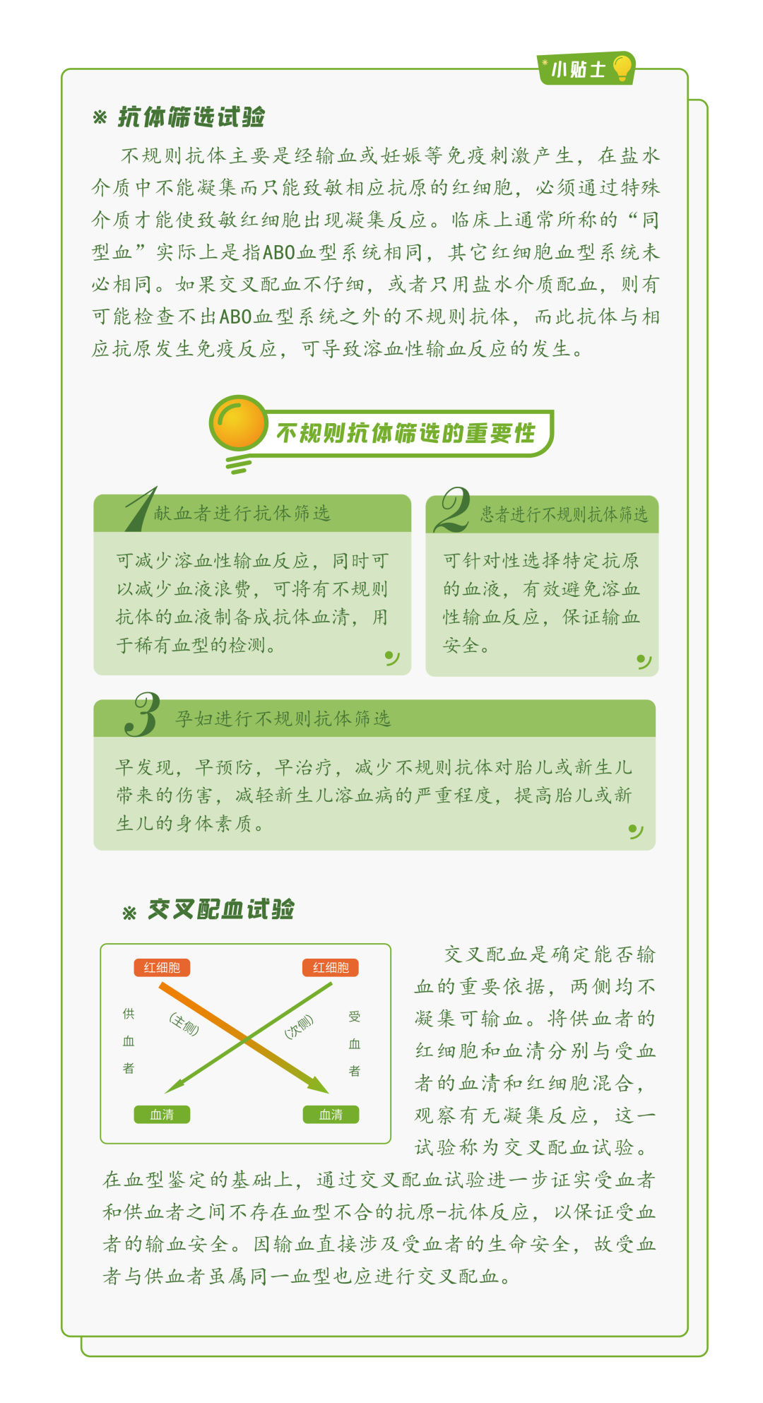 本试剂盒用于间接抗人球蛋白试验,用于不规则抗体筛查和交叉配血,仅用于临床检测,不用于血源筛查。