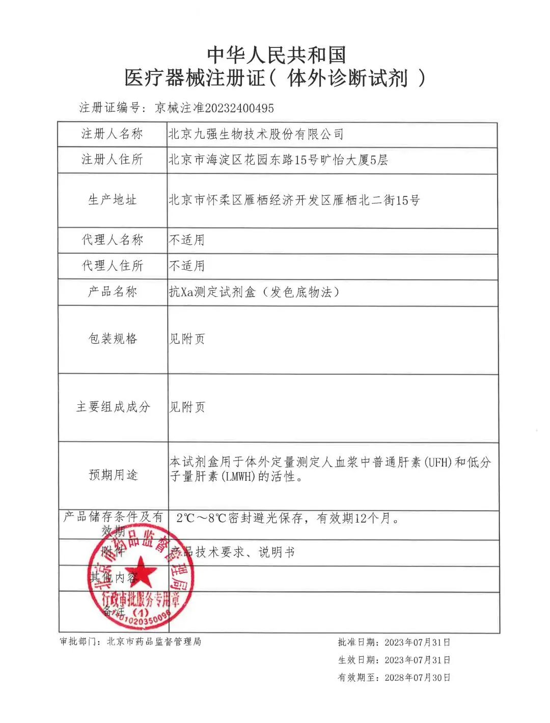 开云online(中国)抗Xa(发色底物法)顺利取得北京市药品监督管理局颁发的《医疗器械注册证》。