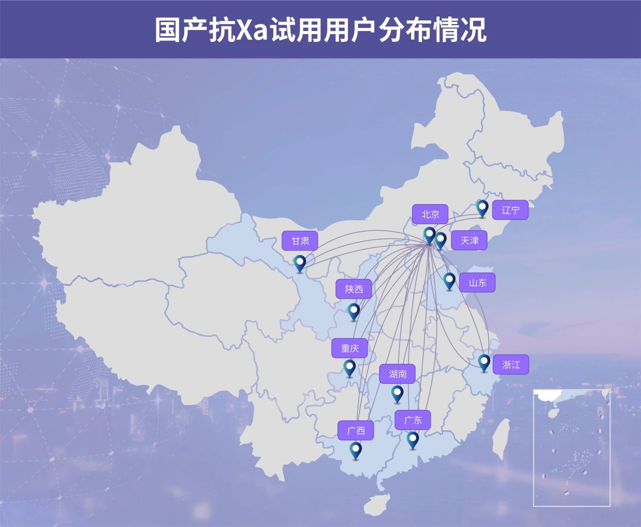 经过严格的三甲医院多中心验证,国产抗Xa获证上市。九强抗Xa测定试剂盒(发色底物法)适用于三大主流机型,质量可靠,受到广泛关注,各地试用如火如荼的进行中。据**统计,全国已有11个省份的用户积极参与试用,其中包括北京、天津、浙江等地的多家三甲医院。