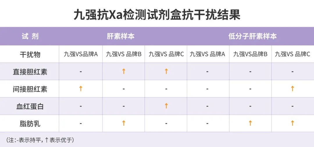 开云online(中国)抗Xa检测试剂盒多中心验证数据显示:九强抗Xa检测试剂盒抗干扰能力优于进口主流厂家配套试剂。九强试剂检测普通肝素/低分子肝素样本时,干扰物浓度低于以下浓度(直接胆红素20mg/dl,间接胆红素10mg/ml,血红蛋白500mg/dl,脂肪乳400mg/dl)时无显著干扰,回收率在90-110%。