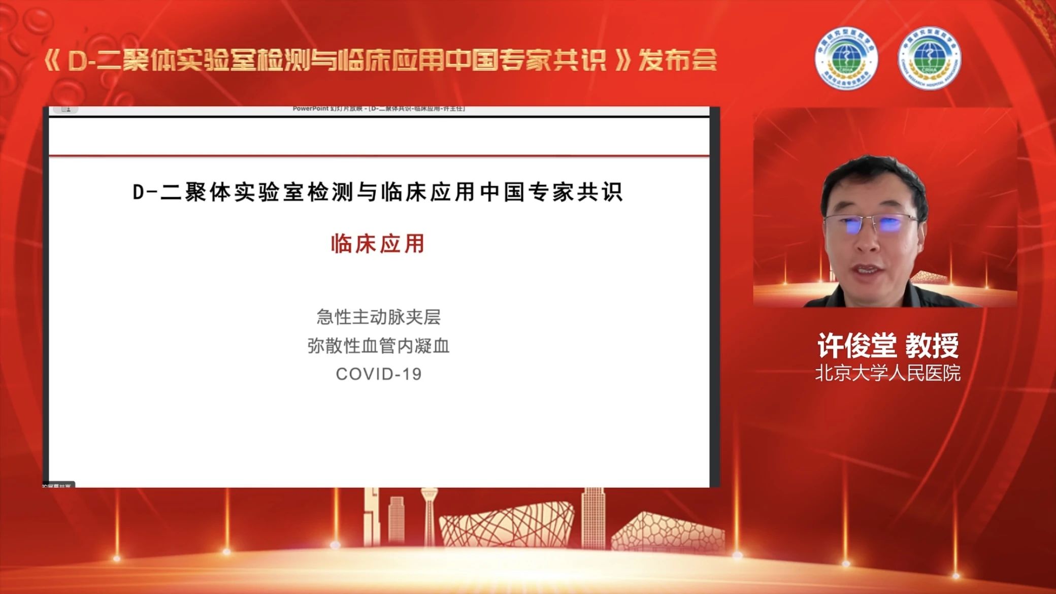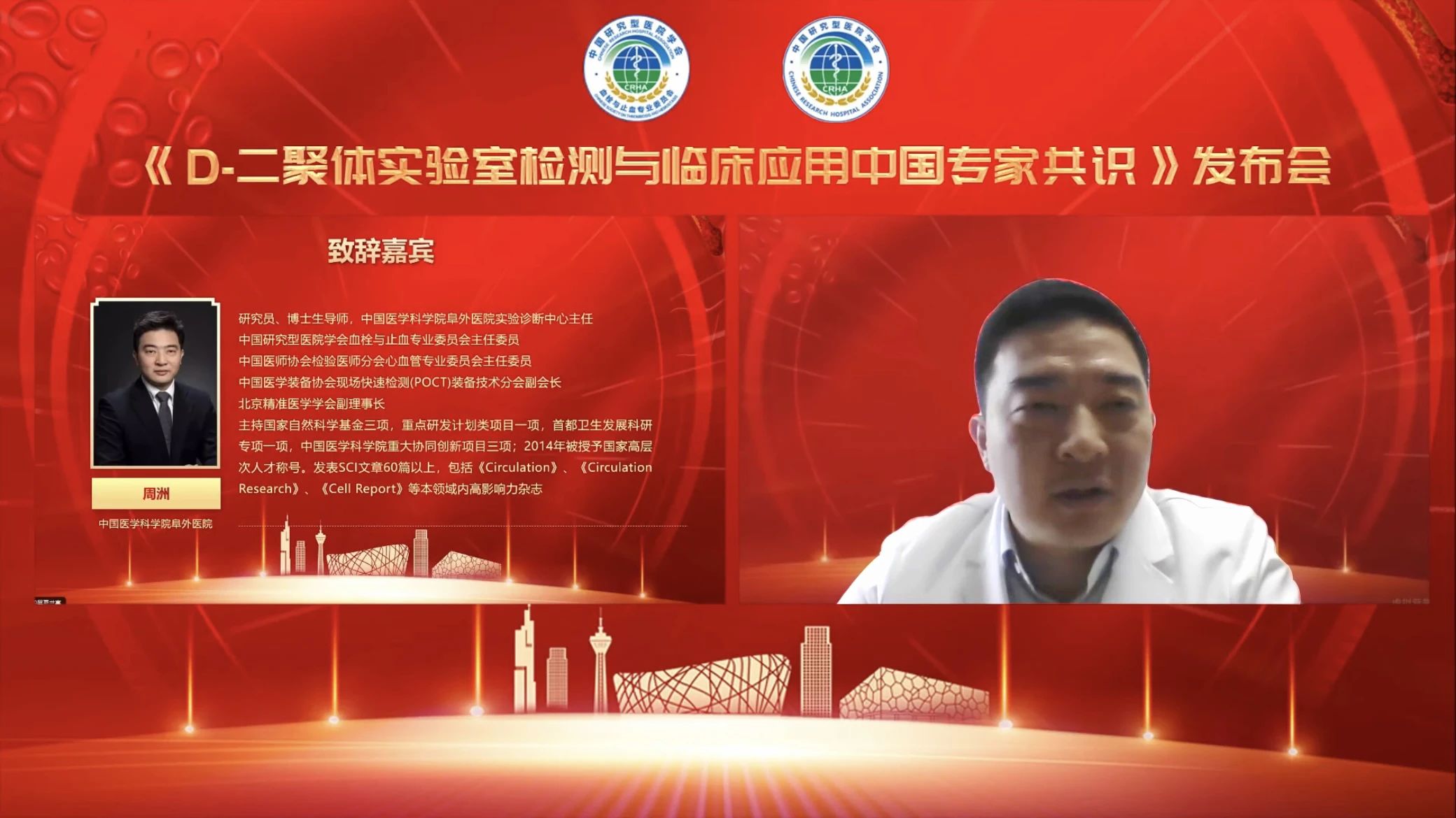 2023年10月13日上午,中国研究型医院高峰论坛暨世界血栓日——十周年主题活动:由中国研究型医院学会血栓与止血专委会主办的《D-二聚体实验室检测与临床应用中国专家共识》发布与解读会于线上召开。