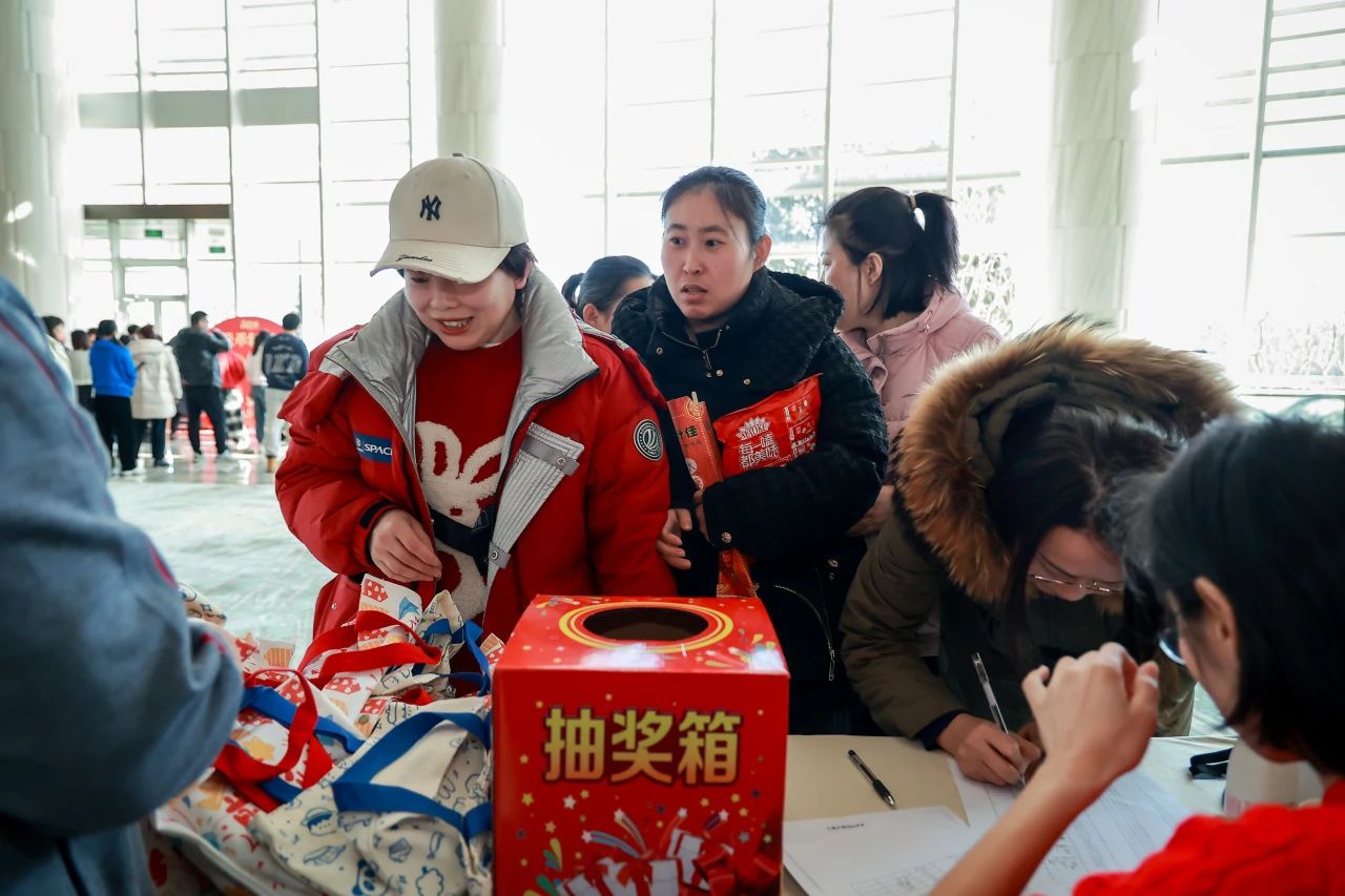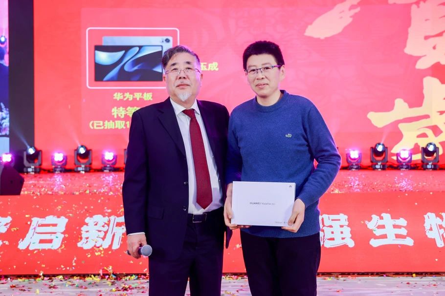 大屏幕上滚动的抽奖姓名吸引了所有人的目光,一份份大奖接连花落在幸运儿头上。